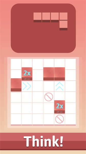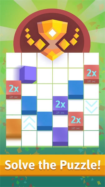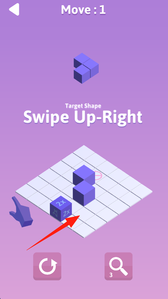 2、按提示操作,将带2X的方块沿箭头方向右上滑动,拼接目标形状,滑动移动方块位置。