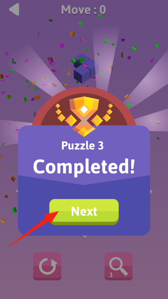 3、完成Puzzle-3后,点击绿色Next按钮,进入下一个拼图关卡继续挑战,点击下一关。