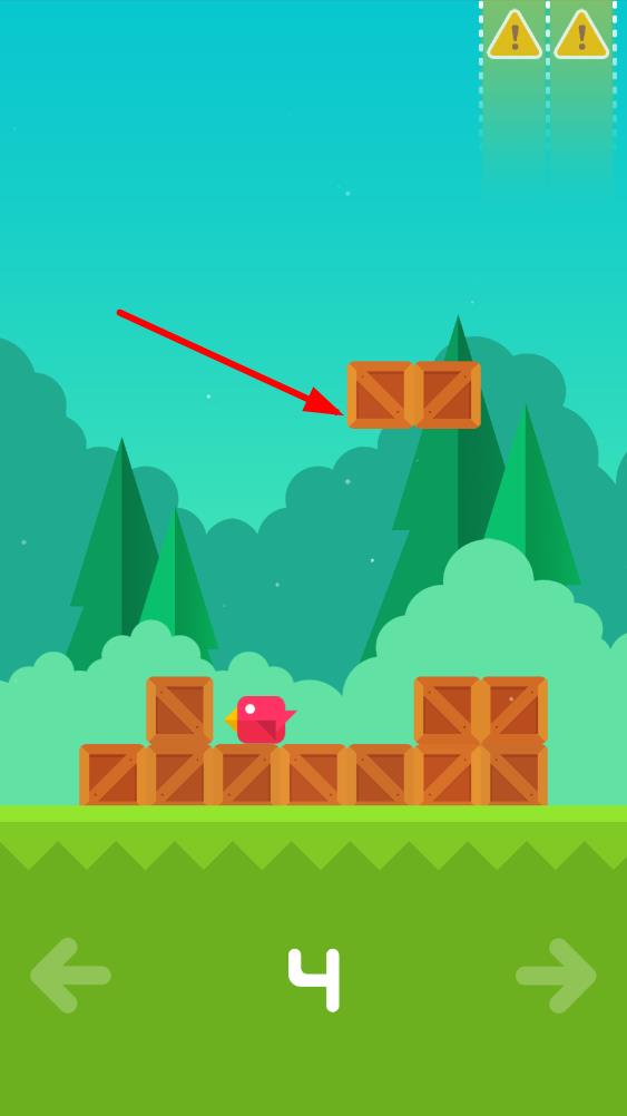 1、左右移动操控:通过点击屏幕左侧或右侧区域,精准控制小鸟向左或向右移动,根据箱子掉落的实时位置调整方向,确保在狭窄空间中避开砸落的箱子,避免碰撞受伤。