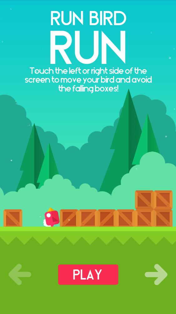 1、进入游戏后,屏幕左右区域分别对应小鸟左右移动,点击左侧或右侧让小鸟避开首次掉落的箱子,开启逃亡之旅。