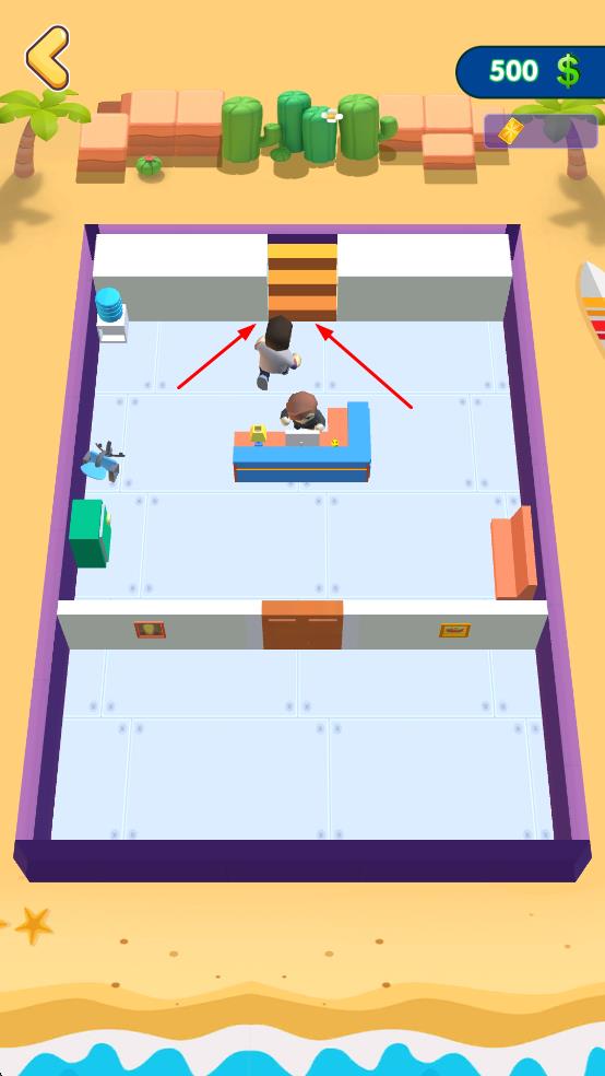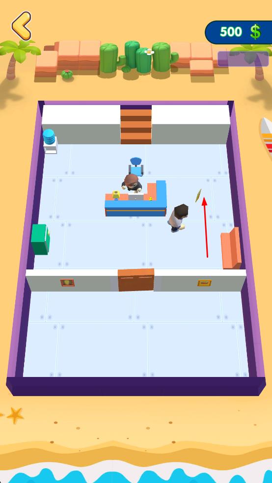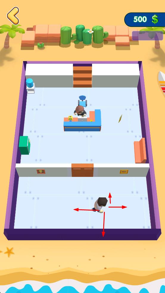 1、操控角色四向移动,收集室内道具,积累右上角金币。