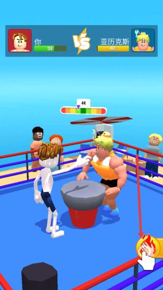 3、参与拳击对战如VS亚历克斯,紧盯上方力量条,把握住时机进行点击右下角火焰按钮来释放技能。