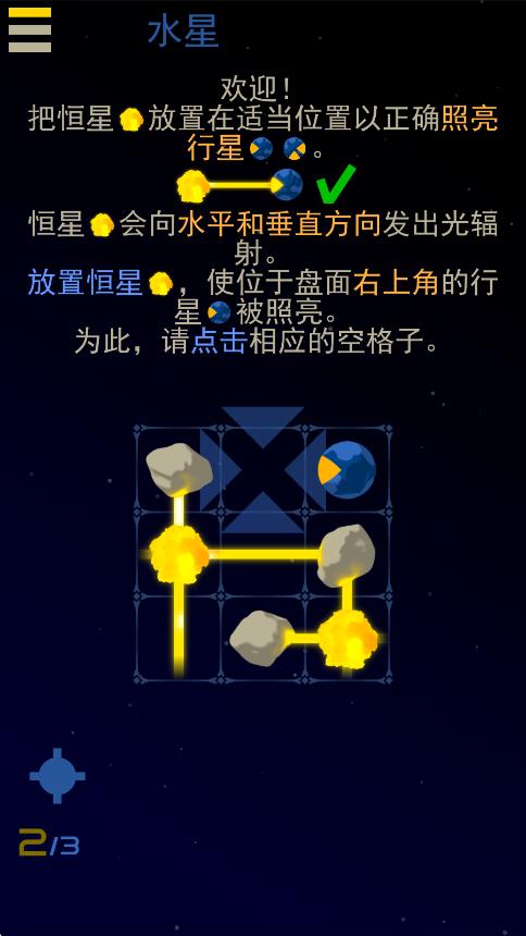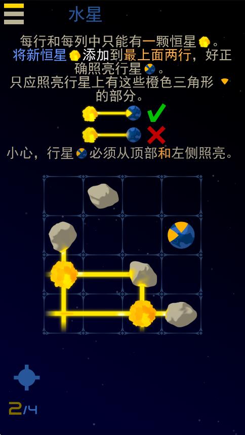 1、创意解谜玩法:以连接小行星点亮太空为核心,融合引力、轨道等虚拟宇宙规则,玩家需精准计算落点与连接顺序,每个关卡解法唯一,充满探索与思考乐趣。
