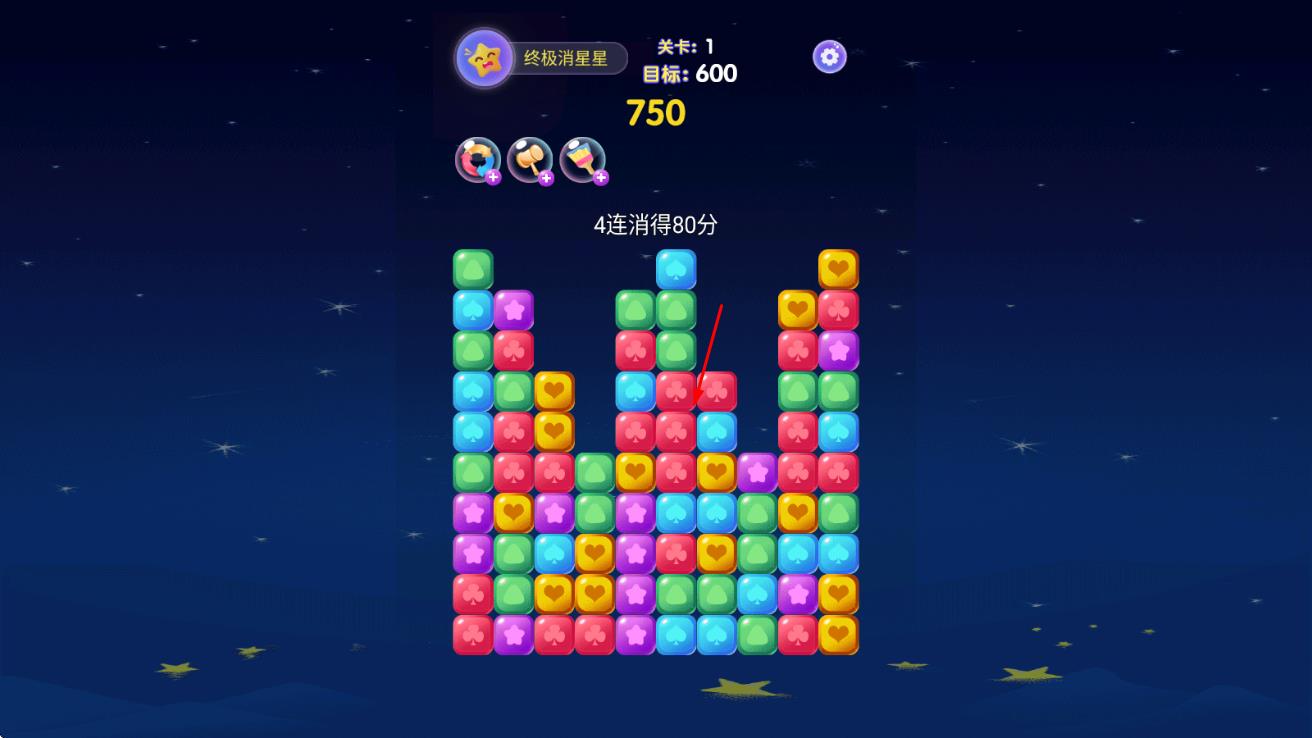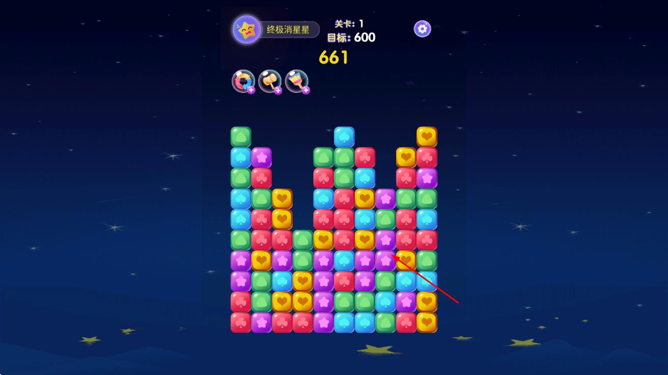2、在消除过程中规划消除顺序,优先连接数量更多的同色星星触发连招,利用连锁反应消除更多星星提升得分倍数。