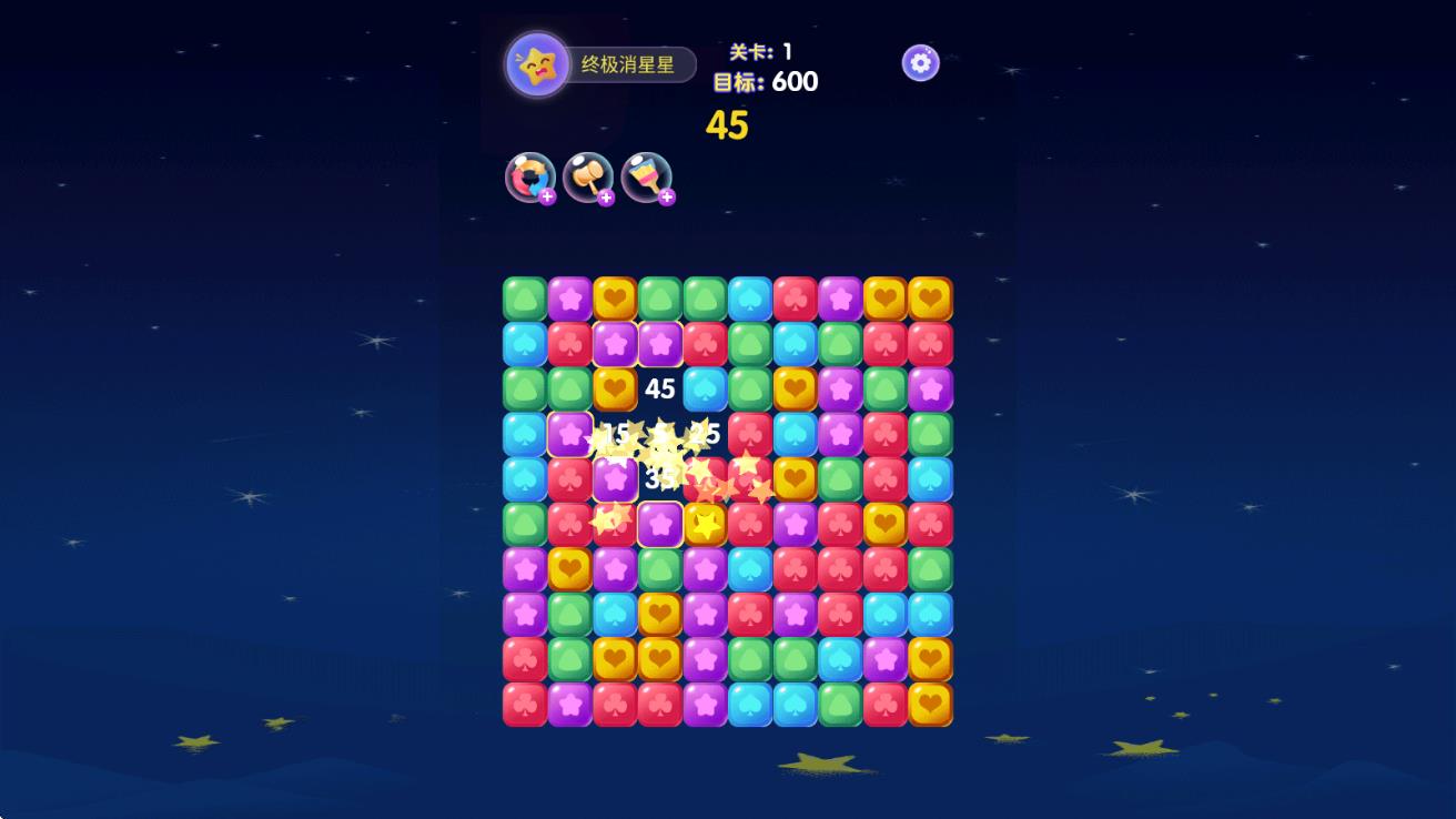 1、即时反馈特效:星星消除时会伴随绚丽爆破动画与得分数字飞溅,连招成功触发专属光影特效,强化操作成就感与视觉愉悦感。