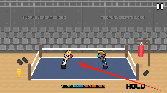 1、进入游戏后,化身拳击师熟悉赛场环境与基础操作按钮,了解不同按钮对应的拳击动作,为开启刺激的战斗做好准备。