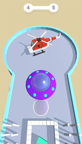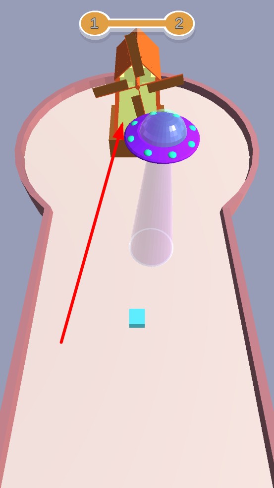 2、攒够资源后,驾驶飞碟抵达终点区,吸取风车的方块,将所有散落的方块都吸取,顺利进入下一关。