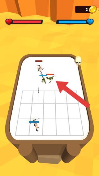 1、玩家可以点击射箭的图标进行增加恐龙的数量,将恐龙移动到指定的区域进行合并,增强实力。