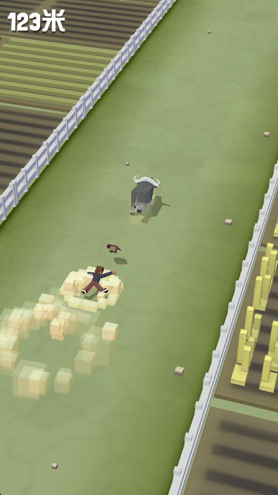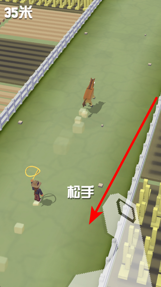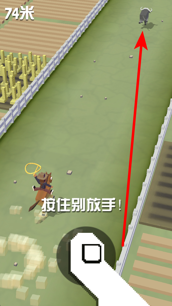 3、骑上动物后若出现有按住别放手提示,持续长按,期间注意躲避障碍,保持对动物的控制,这样才能继续深入跑酷,去套捕更多动物。