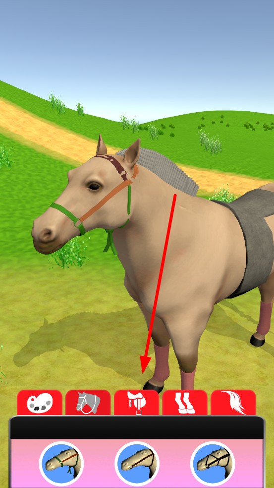 1、通关Level1后点击Continue,进入改装界面,选择自己喜欢的鞍具、护腿等装饰,预览改装效果,打造专属风格的马匹。