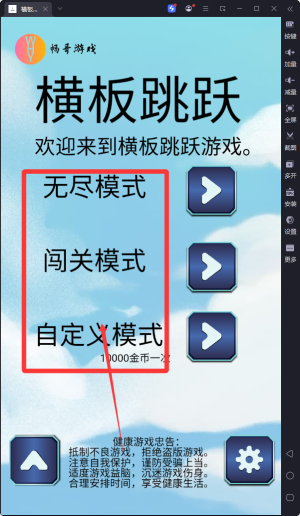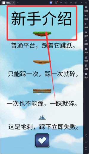 1、玩家控制角色在横板场景中进行跳跃。通过简单的操作,如点击屏幕等,控制角色跳跃的时机和方向,避开障碍物,向前进。