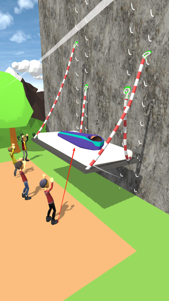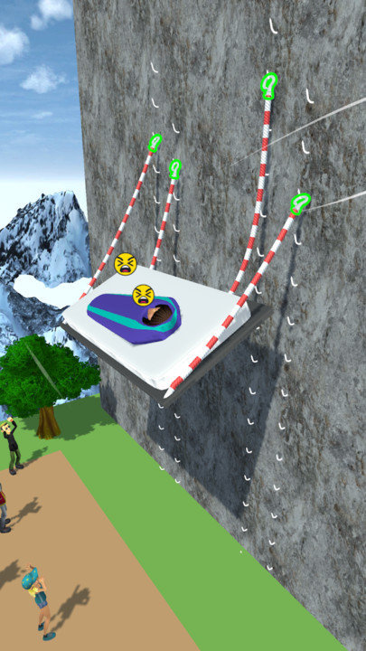 1、简约画面设计:以简洁线条勾勒山地、岩石与受困者形象,背景采用柔和色块区分地形,绳子的张力变化以动态线条呈现,既保证视觉清晰,又让玩家能专注于平衡把控。