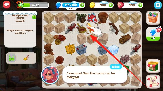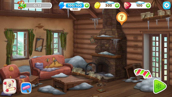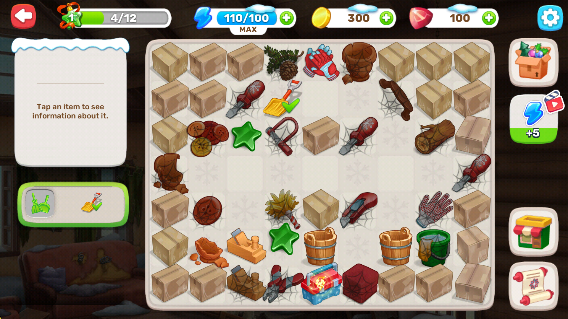 1、在浓厚的圣诞氛围中,打扫房间与合并相结合的基本玩法,尝试不同挑战模式的规则,按照每个要求完成。