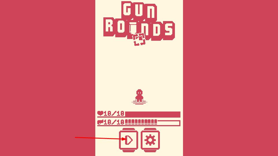 1、在主界面点击箭头图标,进入像素风格射击关卡,角色初始血量10/10、弹药10/10满值,正式开启冒险。