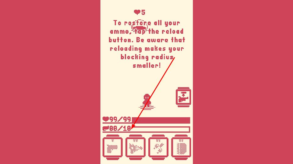 3、当弹药不足时,依据提示点击reload按钮恢复弹药如08/10,但会缩小格挡范围;合理平衡射击、换弹节奏,应对持续出现的敌人观察关卡进程。