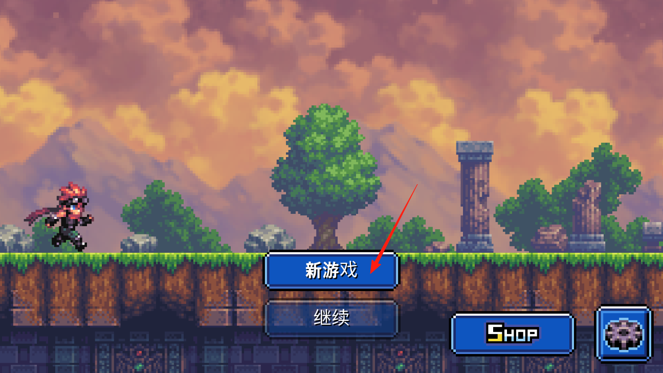 1、进入游戏主界面,看到新游戏按钮,点它开启冒险,选新游戏后,能操控角色在像素风世界里探索,开始一段全新的旅程,去发现各种有趣的地方。