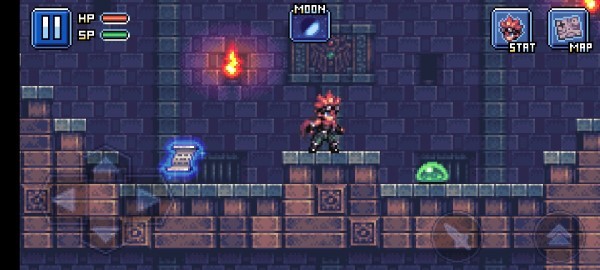 1、操控英雄地牢冒险:玩家操控英雄在横版地牢中前进,通过侧滚动动作完成移动、攻击与躲避,击败沿途怪物,解救被困人员,推动冒险进程。