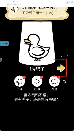 4、孵化出鸭子后,点击图示按钮即可进入下一个界面。
