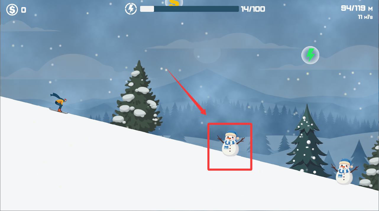 4、遇到雪人需要躲避一下,碰上就会摔倒。