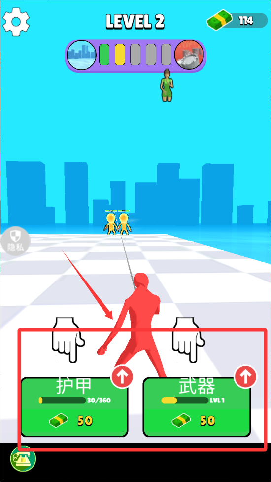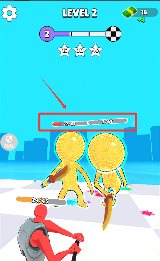 3、敌人头顶这个是血量哦,需要击打完才可以击杀它。