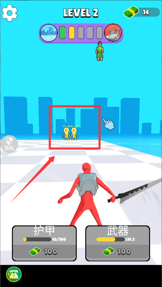 2、滑动一下屏幕就能攻击红色框框里的敌人。