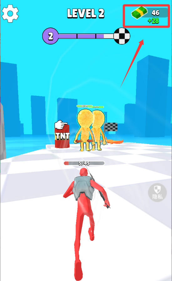 4、右上角是自己获取的钱币,击杀一个敌人就能获取钱币。