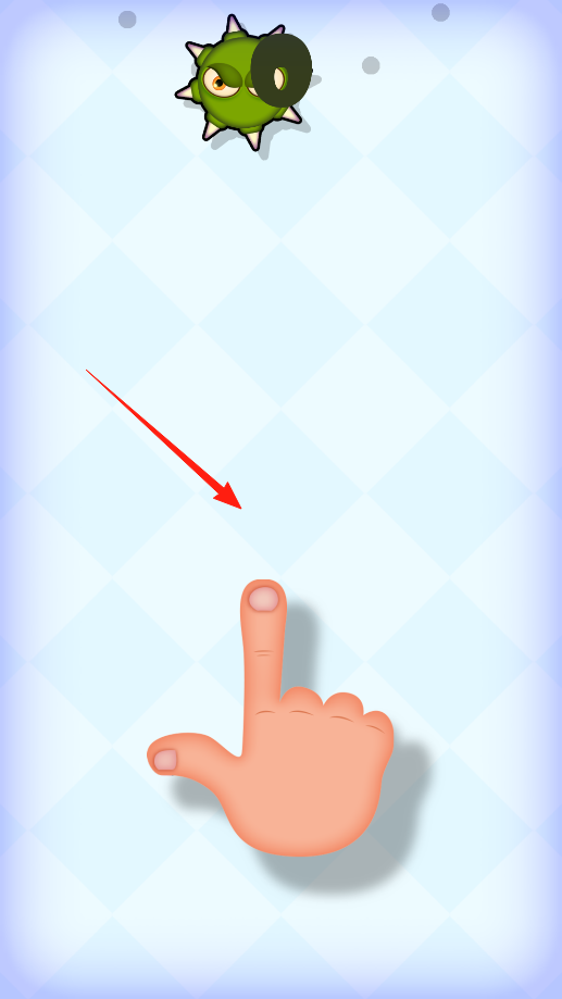 1、按触屏幕控制移动:玩家将手指按在屏幕上,通过滑动控制虚拟小手向前行进,在移动过程中需时刻注意画面中出现的满身长刺的小怪物,及时调整手指移动方向,避免碰撞。