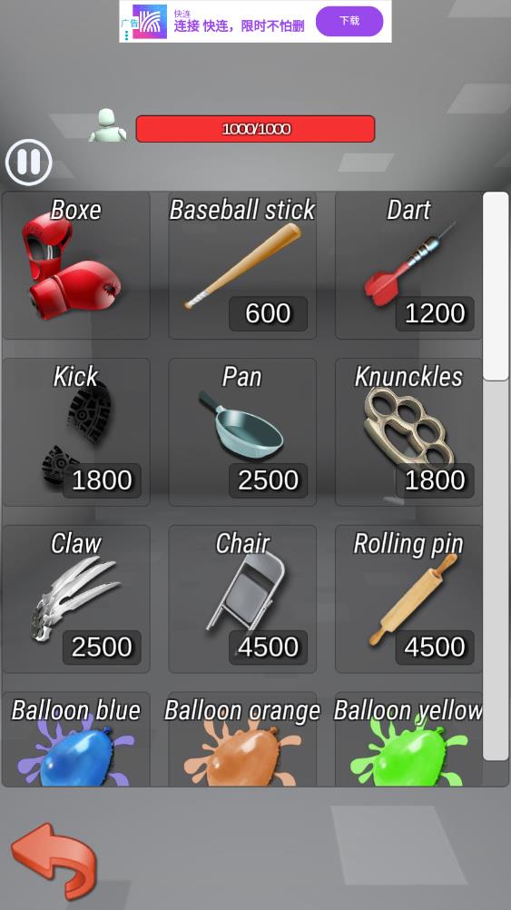 3、通过持续打击傀儡赚取金币,在商店解锁更强武器,应对逐渐变强的傀儡,享受发泄减压的同时提升战力。