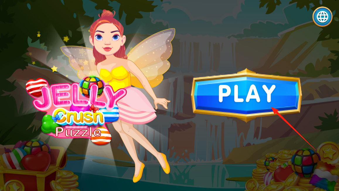 1、看到游戏主界面,有个PLAY按钮,点它就能开始游戏,进入游戏后,应该是要通过消除相同颜色的果冻来闯关,赶紧开始试试吧。