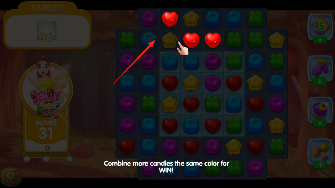 3、善用道具攻克难关:遇到复杂谜题时,可明智使用助推器等道具,道具能快速清除大量果冻或打破僵局,帮助玩家克服难点,提升让玩家在挑战高难度关卡时更有底气。
