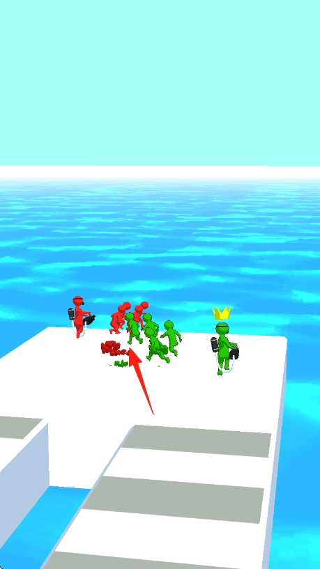 3、指挥绿色队伍按照箭头所示方向,全力冲向红色人群,利用前期积累的数量优势发起冲击,击溃红色队伍,成功通过该关卡。
