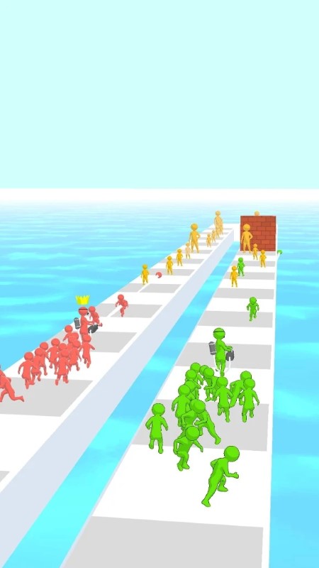 3、胜负规则直观:最终通过打破墙壁比拼人数决定胜负,规则简单明了,玩家能清晰明确目标,所有操作都围绕提升人数展开,让对战焦点集中且直接。