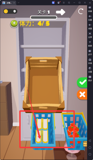 1、玩家要将框子里的所有物品放进冰箱中,并且要摆放整齐。这需要玩家仔细观察和思考,找到最佳的摆放位置,完成关卡挑战。