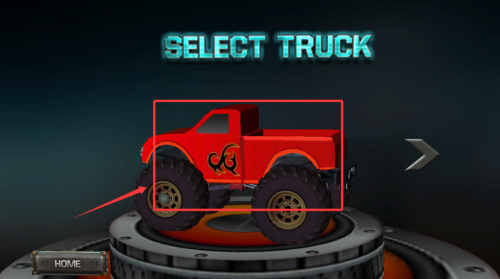 3、车库中陈列着各具特色的巨型卡车,根据赛道特性挑选最适合的钢铁猛兽。