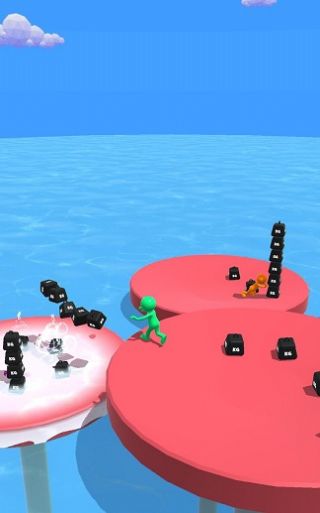 1、进入游戏选择橡皮人外观,在圆形竞技台通过虚拟摇杆操控移动,靠近黑色重物时,自动拾取,需规划移动路线,警惕对手干扰,避免自身掉落平台。