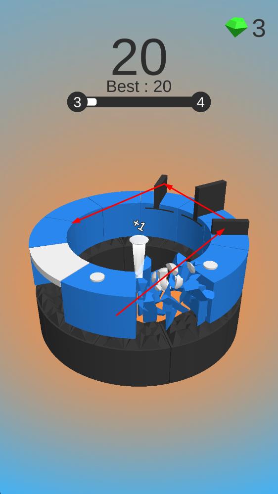 3、若能在球球到达前精准移动环箍避开所有障碍并完成击碎任务,即可持续累积分数,挑战更高关卡,反之则游戏结束。