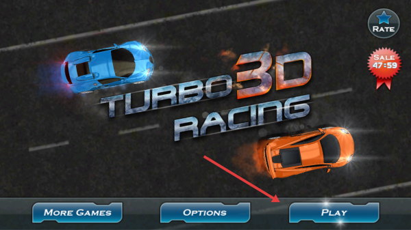 1、在Turbo3DRacing主界面,点击PLAY,进入地图选择页,选解锁的1.PLAIN赛道,开启竞速。