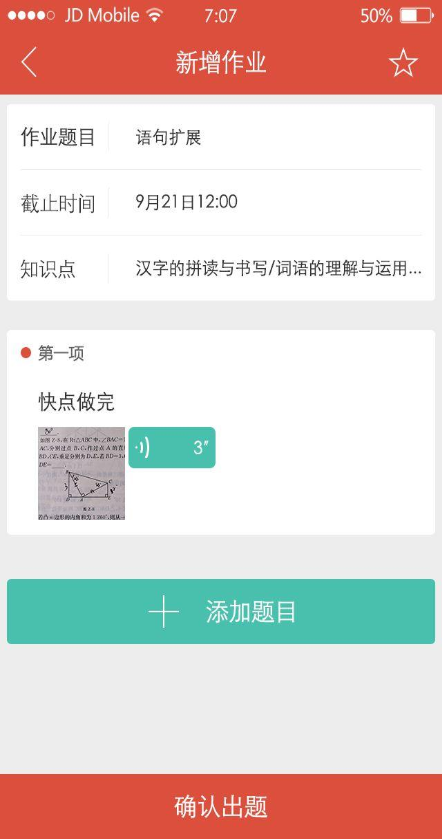 1.随心出题:老师布置作业,拍照语音全方位覆盖。