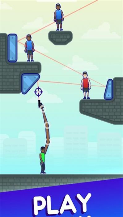 3、弹道策略博弈:同一敌人存在多种消灭路径,直射虽操作简单却可能被木箱、铁栏等掩体阻挡;反弹需精准调整机械臂弯曲角度,让子弹绕墙两圈避开障碍。1、弹道预判挑战:子弹轨迹不仅受机械臂弯曲影响,木质墙面会吸收部分动能让弹道下沉,金属表面则会产生镜面反,动态物理反馈让每一次射击都充满策略张力。