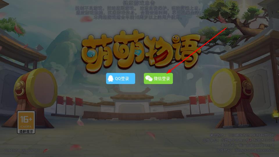 1、启动游戏,在登录界面选择微信登录或QQ登录,同时就需要进入公告展示环节。