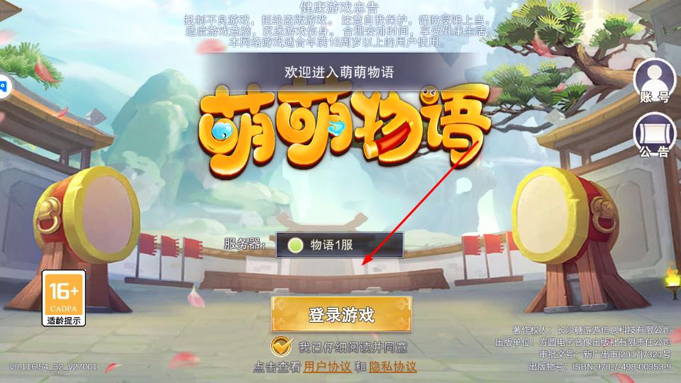 3、选定服务器如物语1服,勾选协议,点击登录游戏,就可以正式去进入游戏世界。