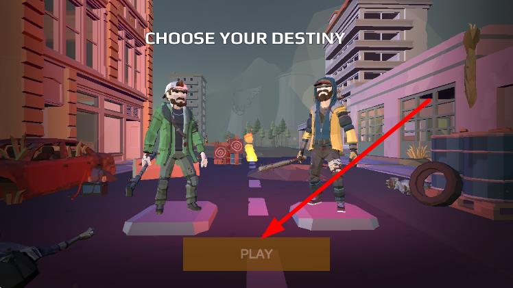 1、在游戏初始界面,看到标题,选择心仪角色后,点击下方PLAY按钮,开启末日城市冒险之旅。
