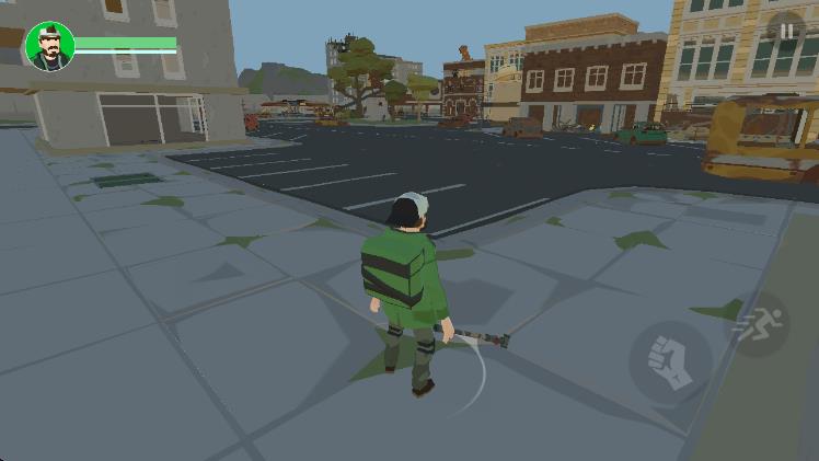 3、角色移动到建筑旁街道,手持武器可利用武器攻击敌人、破坏障碍物,探索新区域,推进剧情。