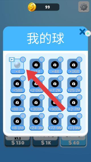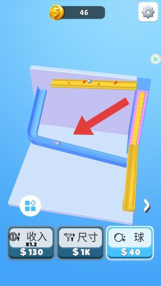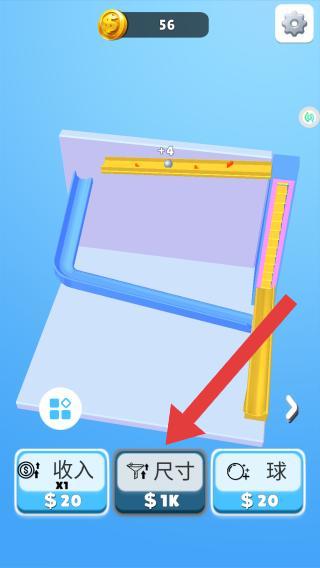 1、底部的功能选项包括收入、尺寸和球,玩家可以消耗金币升级这些属性,从而提高游戏效率和通关速度。