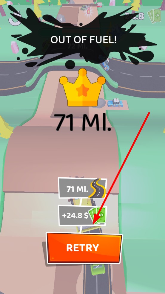 2、资源管理:资源管理维度丰富多元,燃油严格限制推进时长,金币直接决定升级潜力,路边道具暗藏惊喜,需要平衡收集与消耗是通关核心逻辑。