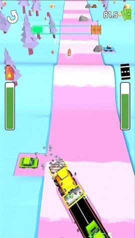 2、障碍应对技巧:障碍应对格外注重效率,碾碎小型碎石补充路面,果断绕开巨型障碍避免损耗,善用道具清除顽固阻碍,大幅提升推进流畅度。
