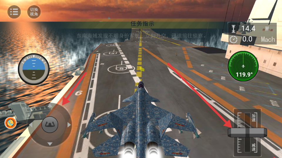 1、拟真驾驶:完整模拟真实舰载机起降全流程,精确还原襟翼控制、油门响应等专业操作细节,触屏震动反馈真实模拟金属仪表触感。