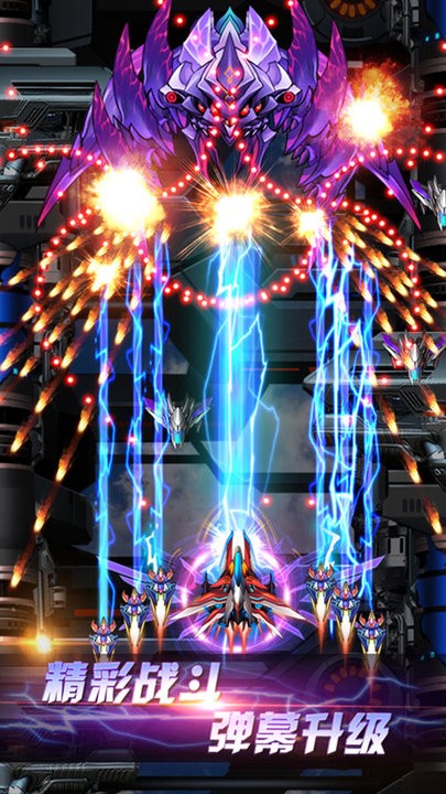 1、视觉盛宴:采用粒子引擎打造爆炸特效,战机尾焰与能量光束会随环境光实时变化,暴雨关卡中弹幕轨迹还会产生水面折射效果。