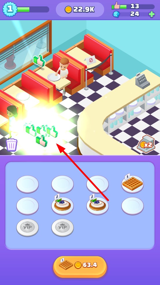 2、客人食用完后,会获得比赞的手势,可以用来解锁店内的更多装饰品,打造不同风格的甜品店。