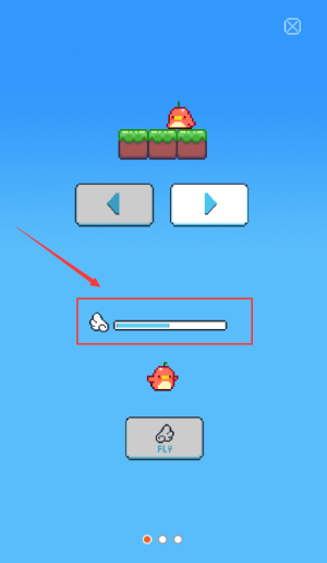 1、点击红框FLY按钮,控制红色小鸟开始飞行。